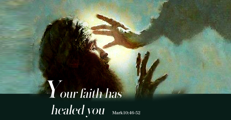 マルコの福音書10章46-52節 46 彼らはエリコに来た。イエスが、弟子たちや多くの群衆といっしょにエリコを出られると、テマイの子のバルテマイという盲人のこじきが、道ばたにすわっていた。 47 ところが、ナザレのイエスだと聞くと、「ダビデの子のイエスさま。私...